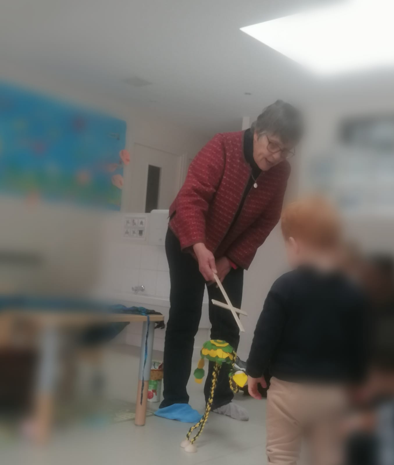 En séquences de 20 minutes, avec des histoires simples, des jeux de doigts, des comptines chantées, des marionnettes…