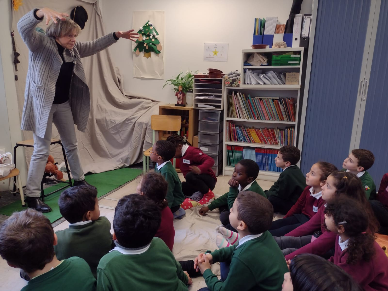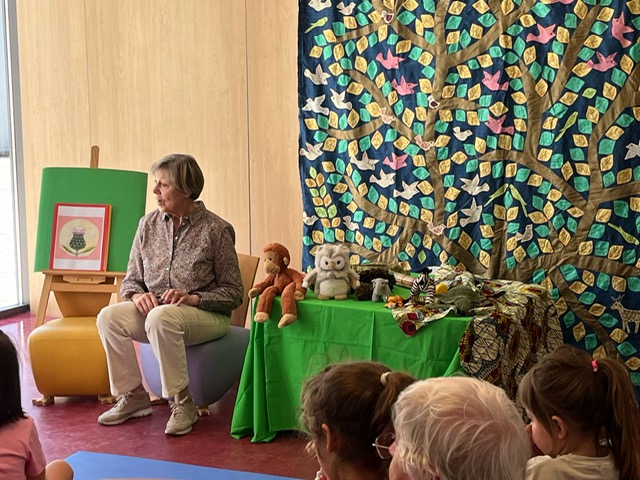 En petites, moyennes et grandes sections, nous proposons des « racontées » de 25 à 45 minutes ponctuées de comptines, chansons, jeux de doigts en lien avec le projet de classe ou d’école.